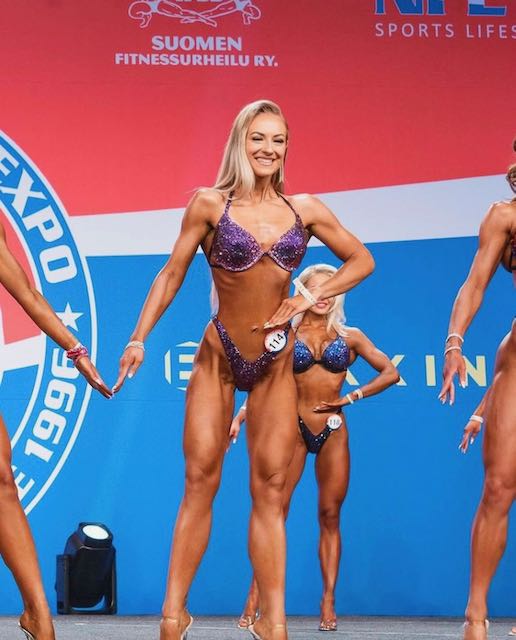 Bikini Fitness -kilpailija, joka lunasti mm. edustupaikan junioreiden maailmanmestaruuskilpailuihin syksyllä 2024 erittäin kovatasoisessa sarjassa.